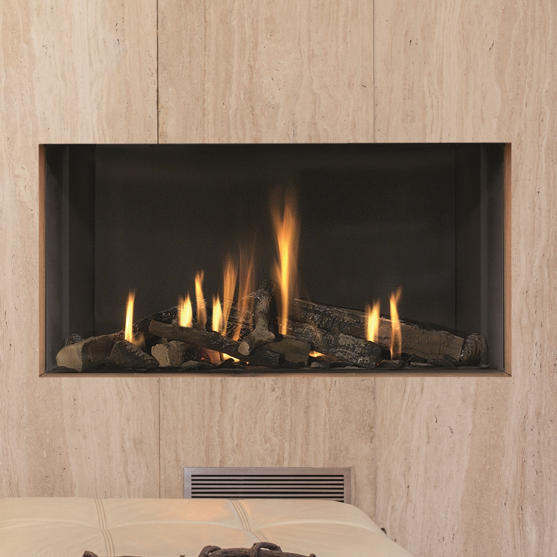 This single sided landscape gas fire is perfect to be installed as a ‘hole in wall’ design..